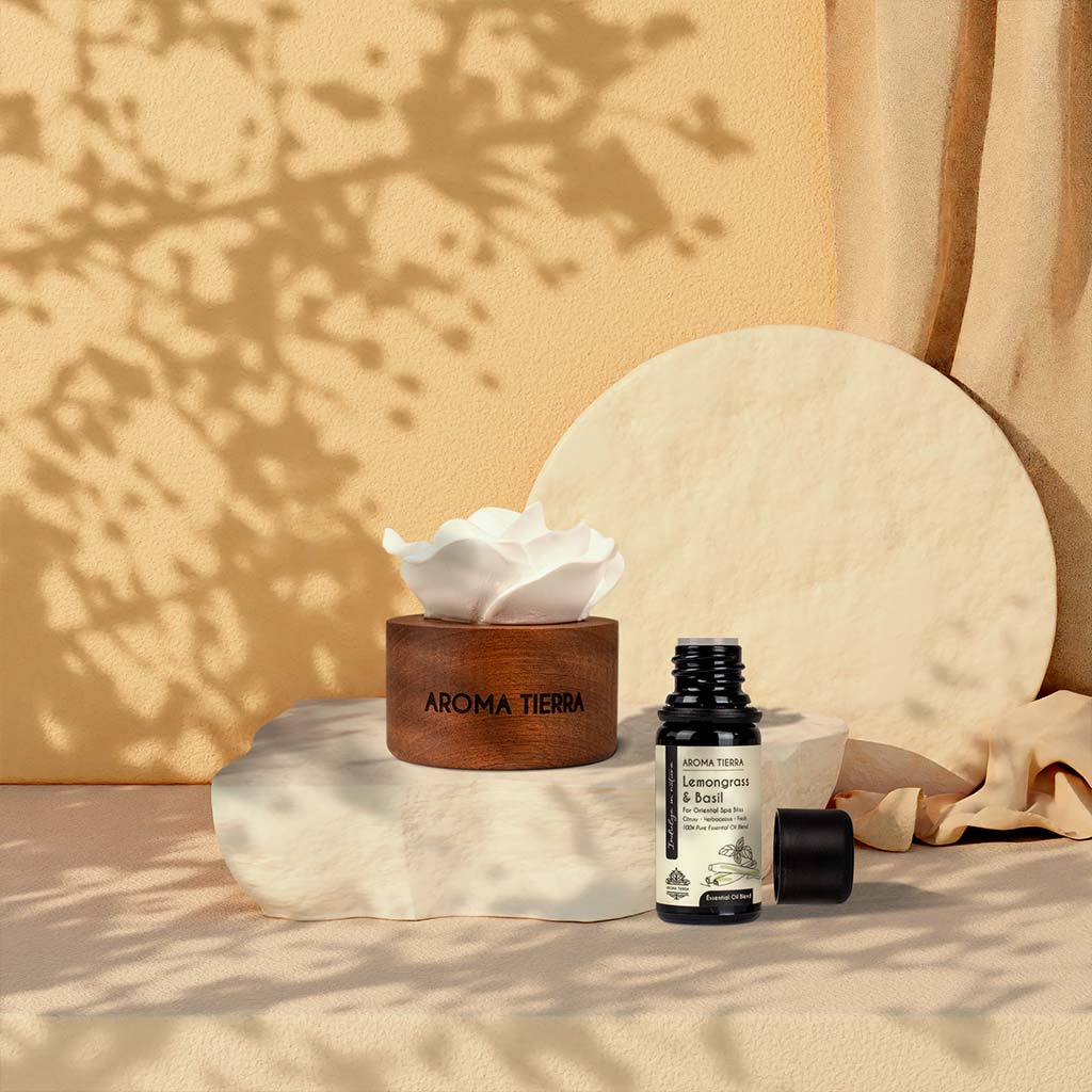 Cera Flora (Wood) — Ceramic Essential Oil Diffuser (Non-Electric)