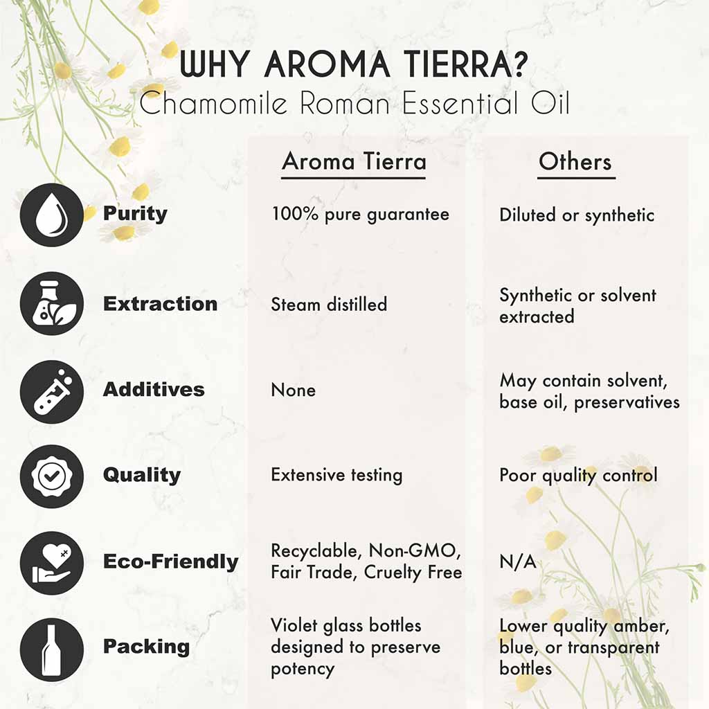 - Aroma Tierra offers 100% Pure & Organic Chamomile Roman Essential Oil from France