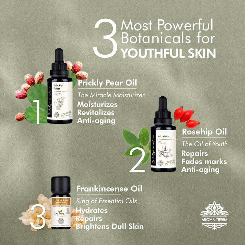Face Oil Set - Rosehip, Prickly Pear, Frankincense Essential Oil